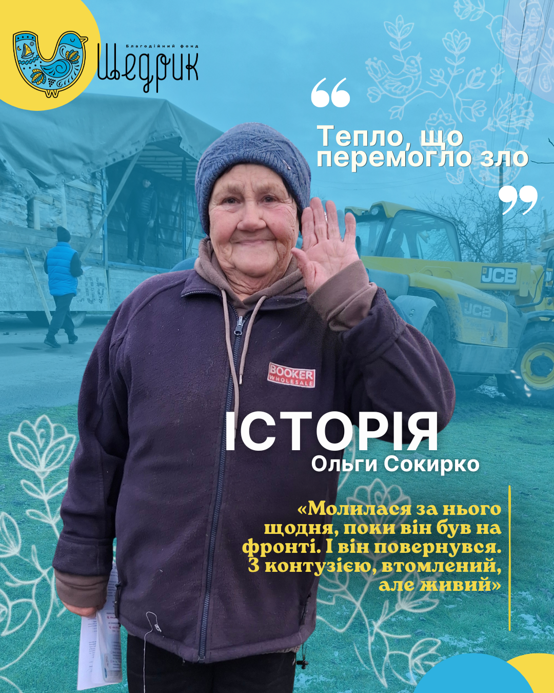 Пані Ольга знову вдихає ліки з інгалятора і втомленою, але щирою рукою витирає очі: «Це я від хвилювання. Дякую вам, люди! Хай у кожній хаті буде добро, а наші хлопчики повернуться додому з Перемогою».
